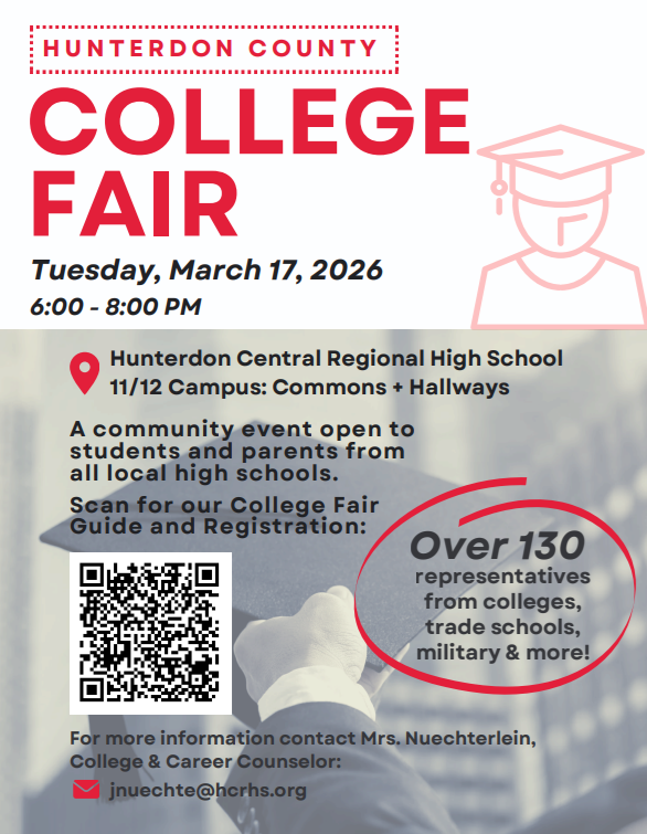 We are eager to host this event at Hunterdon Central and offer it to nearby high schools as well. We would love for you to advertise the fair to your students and parents. We expect 130+ colleges, trade/technical schools, and military recruiters.
