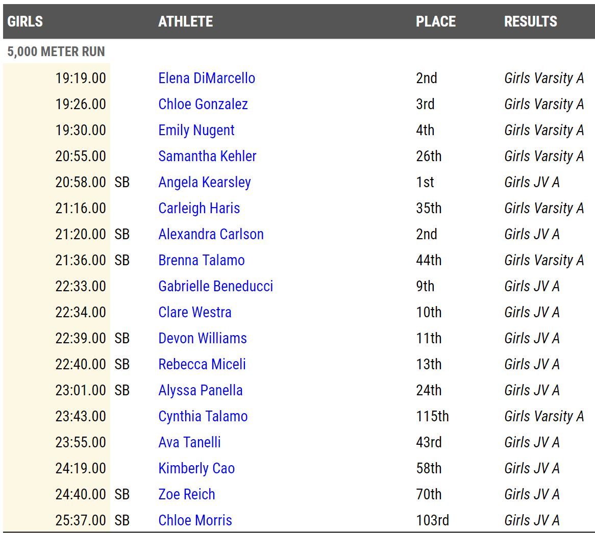 North Hunterdon, led by junior Ellie DiMarcello, averaged a meet-best 20:05 and won the Varsity A race with 69 points, beating West Windsor-Plainsboro South (107) and Randolph (109). In fact, the Lions ranked No. 1 in a meet merge of all girls teams.