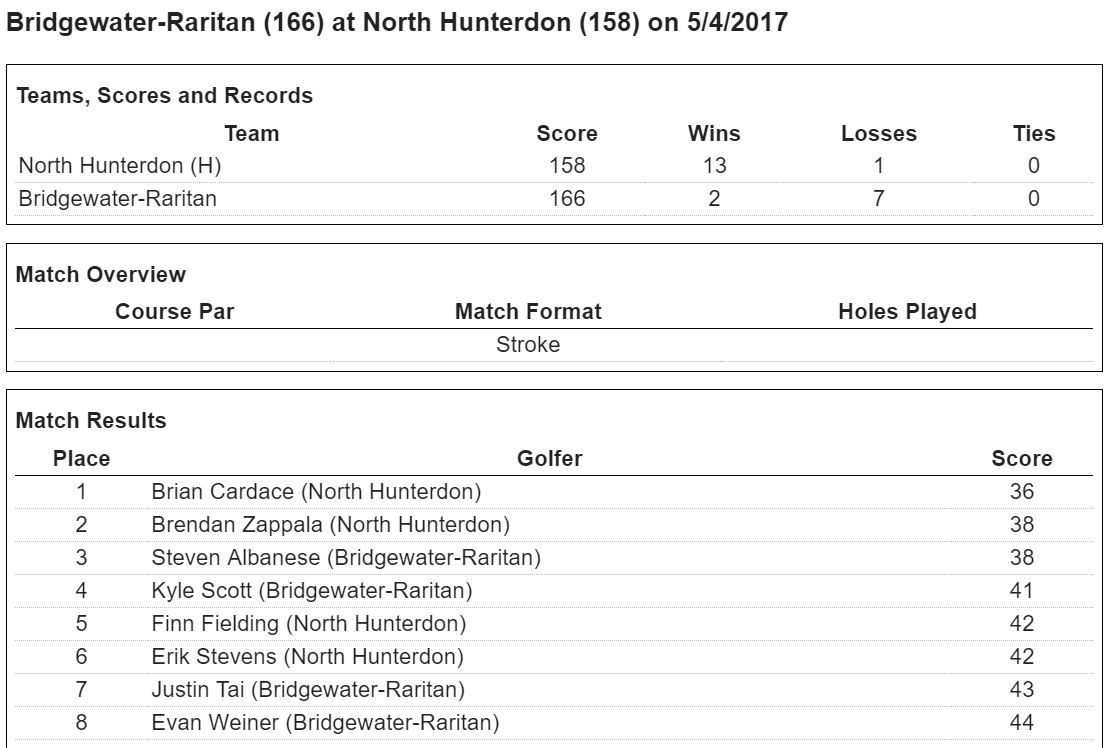 Boys Golf Report: Bridgewater-Raritan (166) at North Hunterdon (158) on 5/4/2017