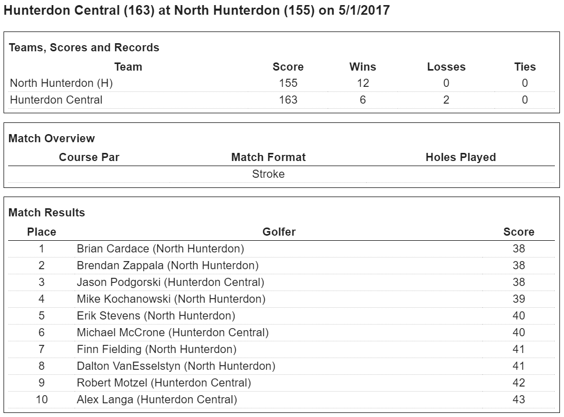 Boys Golf Report: Hunterdon Central (163) at North Hunterdon (155) on 5/1/2017