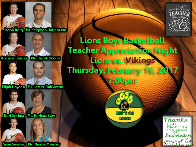 Boys Basketball Teacher Appreciation Night 2-16-17