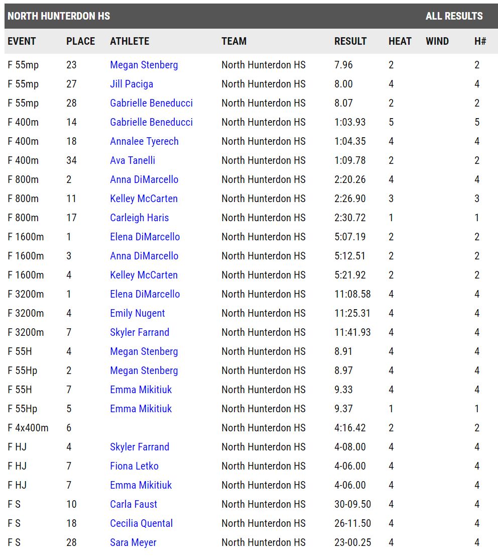 Girls Winter Track: North Girls Winter Track take 9th in the NJSIAA Group 4 Championship