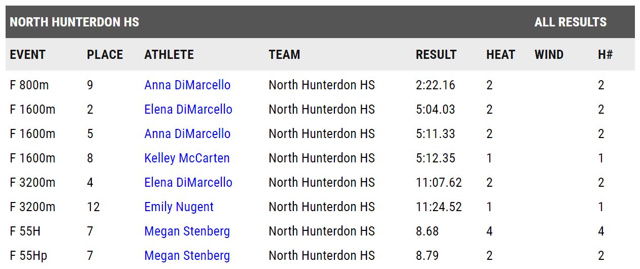 Anna DiMarcello, did plenty to vault North Hunterdon up the team standings as well. Anna earned Silver in the 800m run with a time of 2:20.26 and added a Bronze medal with a 5:12.51 showing in the 1600m race.