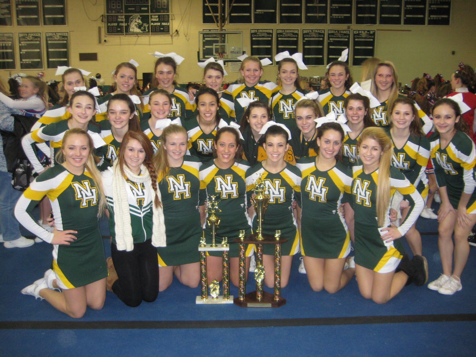 The North Hunterdon Cheerleaders won first place at the Monvtille Cheerleading