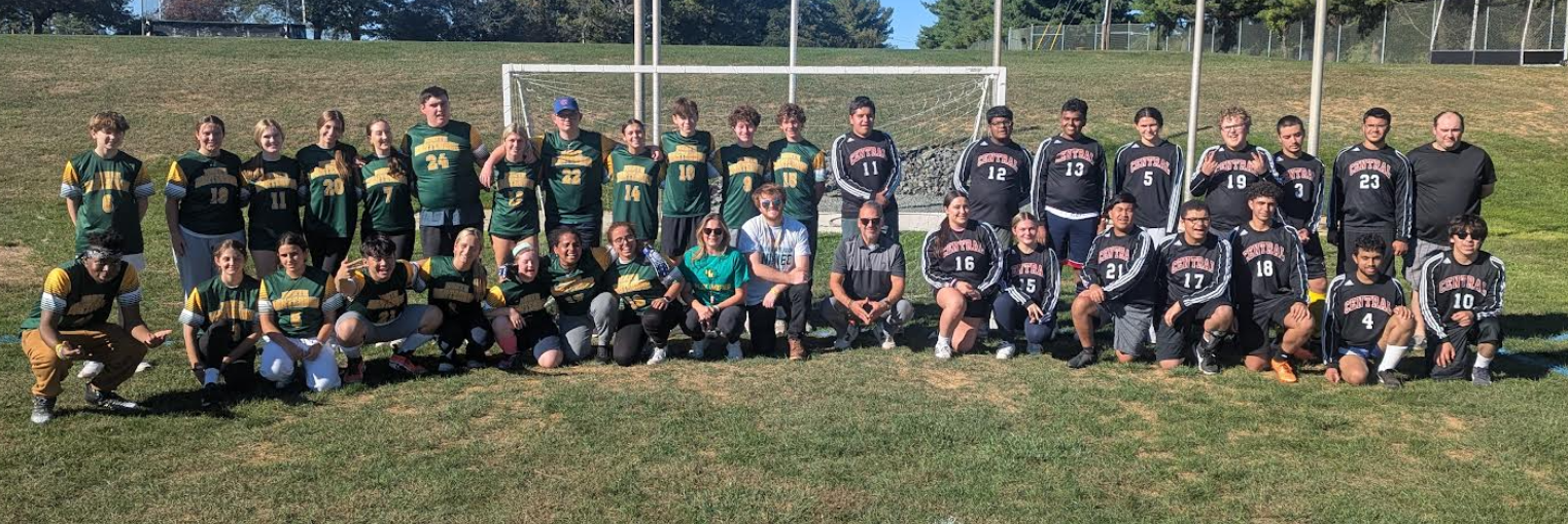 The atmosphere at the Lions Den was electric with many people in attendance, marking a day of community, celebration, and fiercely well-earned competition in Unified Soccer. The North Hunterdon H.S. Lions prepared to face the formidable Hunterdon Central H.S. Red Devils. With officials like referee Marielle (Let’s get a W) Thorsen overseeing the game, and scoreboard operators Ellen (Broadway Show) Anderson and Giana (Wild Cat) Thorsen the battlefield was ready.