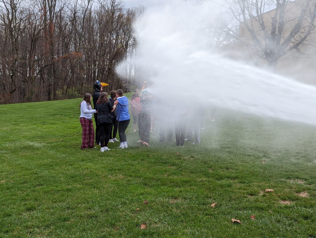 The Voorhees High School Unified Club participated in the Special Olympics Thanks4giving Dash and Splash again this year and raised $7,740, the 2nd highest team in the state for fundraising. Unfortunately, they were unable to make it to Asbury Park for the actual event, so the Lebanon Fire Department brought the water to them! On Wednesday, November 16th, students and advisors of the Unified Club were hosed down for their own Thanks4giving Splash at Voorhees High School.